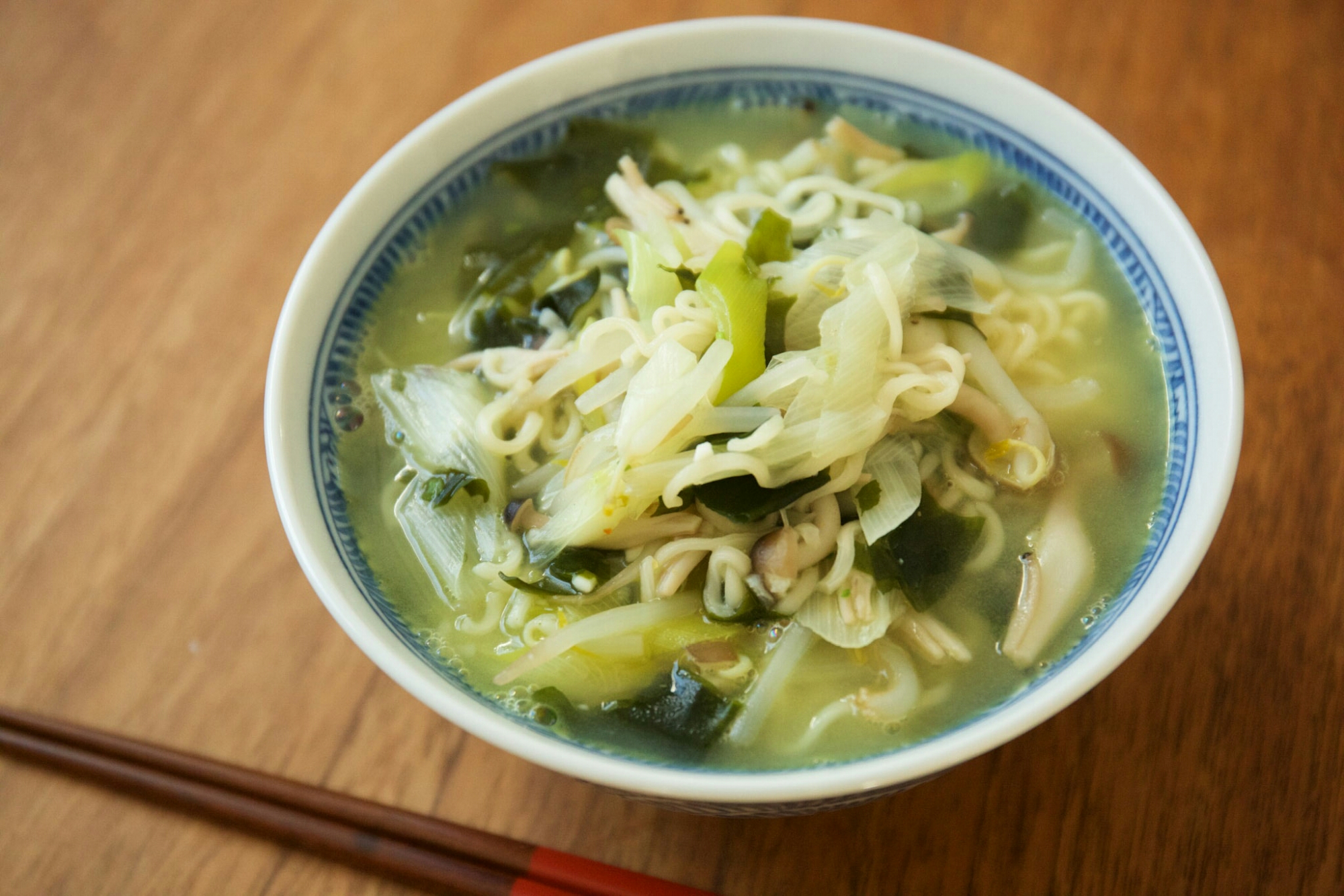 たっぷりのネギとわかめ、しめじに