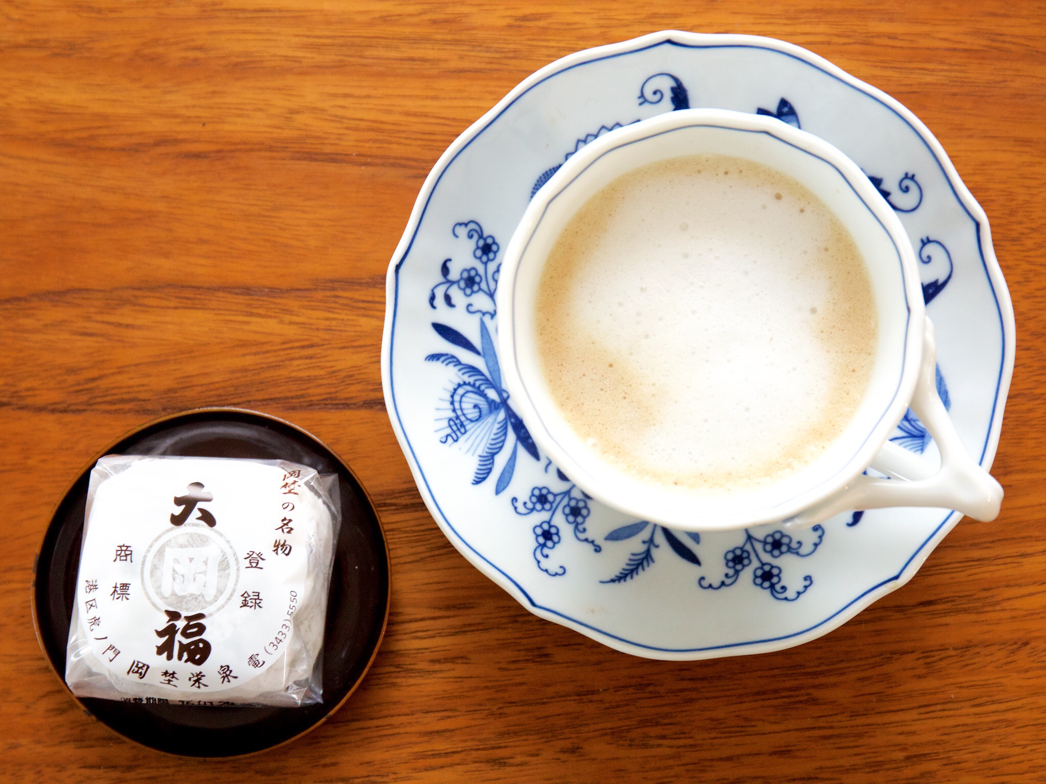 豆大福とカフェラテで、ほっと一息。