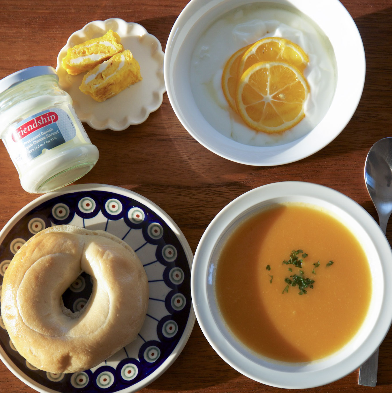 オムレツなのにだし巻き形状なのは、玉子焼き器試運転のためなのです。
